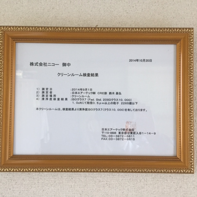 お客様の高い品質レベルに対応する為、東久留米工場にクリーンルーム(クラス1万)